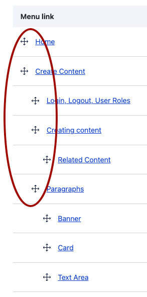 - You can use the + arrows on the left to move menu items up & down or nest them.