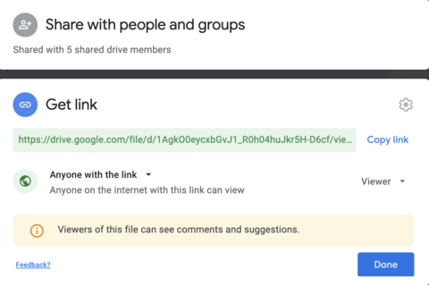 - Make sure the settings are set to "Anyone with the link"
