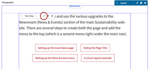 • As you scroll down the page, hover over the section you want to edit and click on the pencil icon.