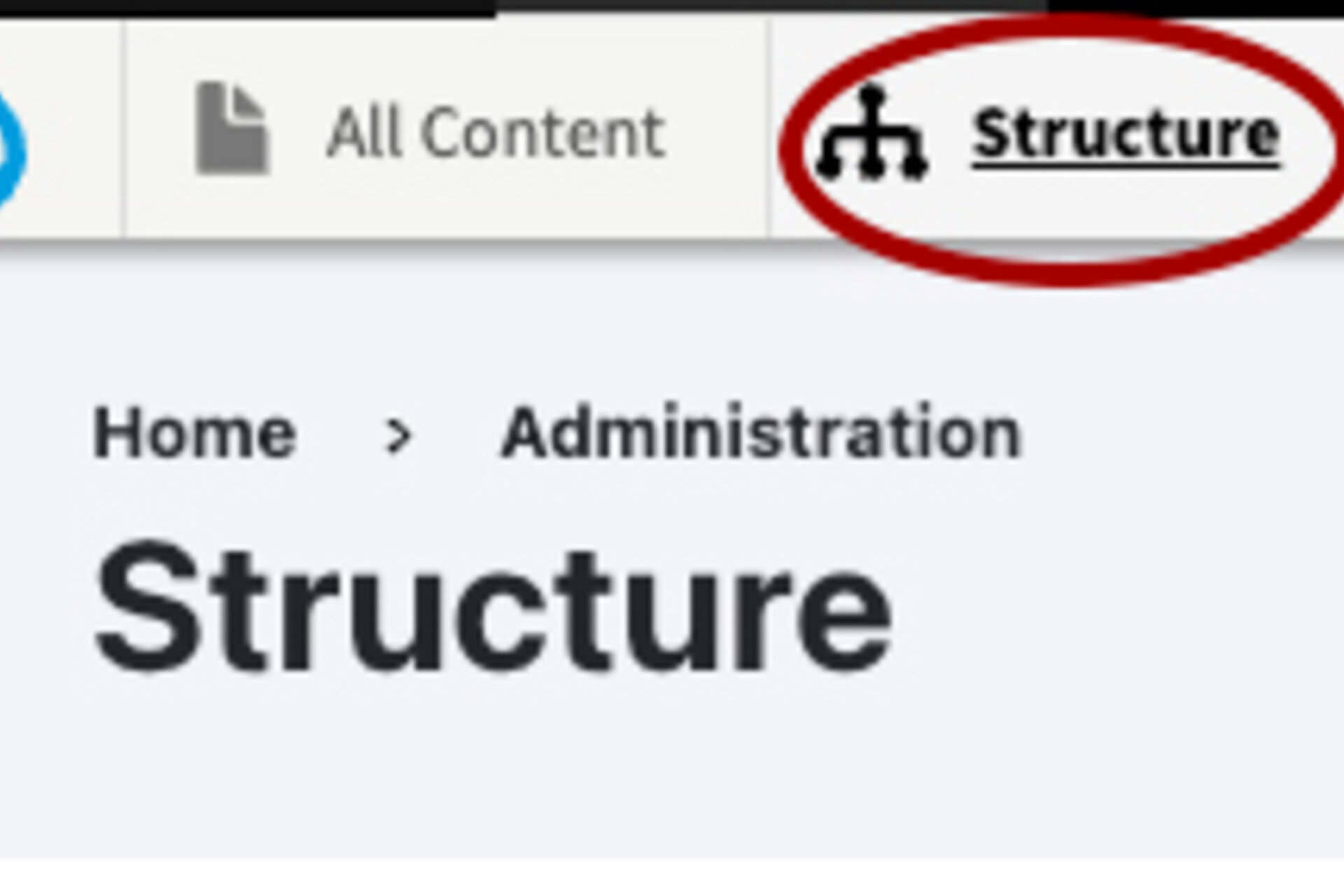- Click the hamburger menu or Manage links to bring back the administration menu.