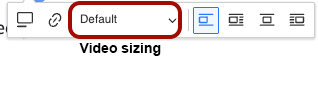 The toolbar will allow you to toggle the caption on/off, create a link, and adjust alignment. While the dropdown menu for sizing appears on a video, the only option at this time is full size.