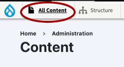 Hover over All Content and click on Manage content. This will bring you to the Basic page section.